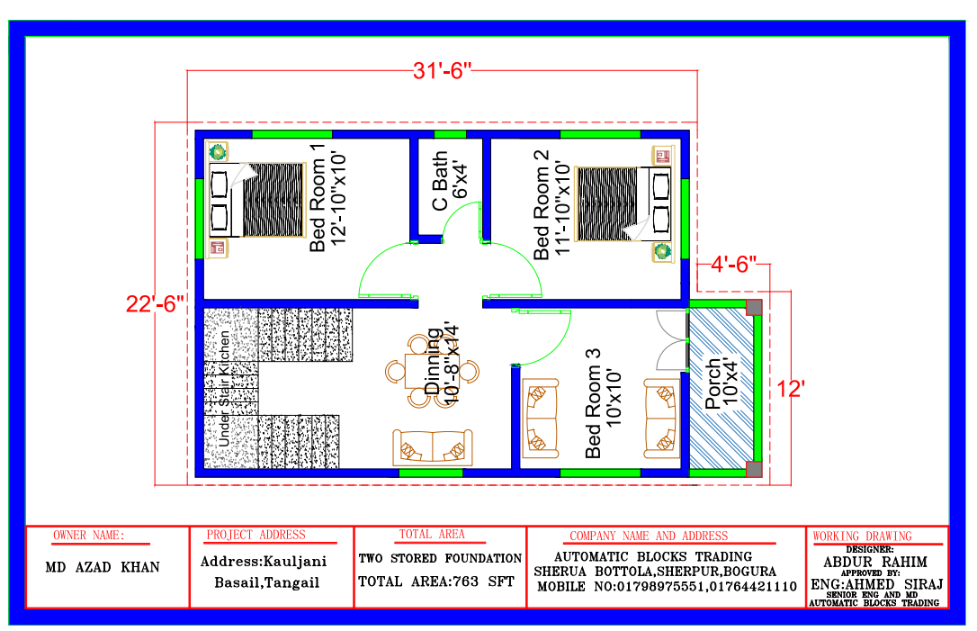 Two storey Building, 2 Bedroom, Kitchen,Drawing,Bathroom