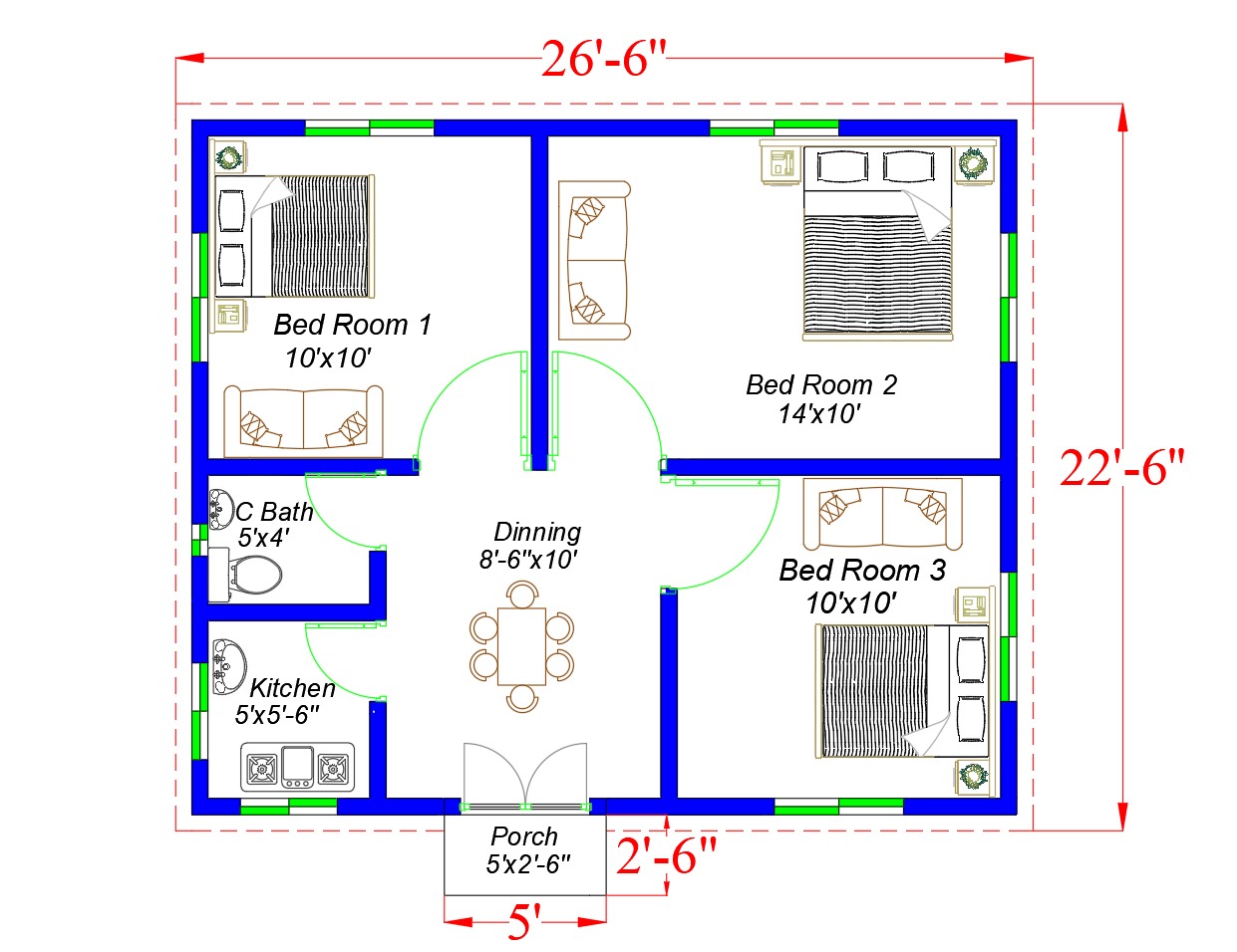 3 bedroom, 1 kitchen room, 1 bath room, DRAWING