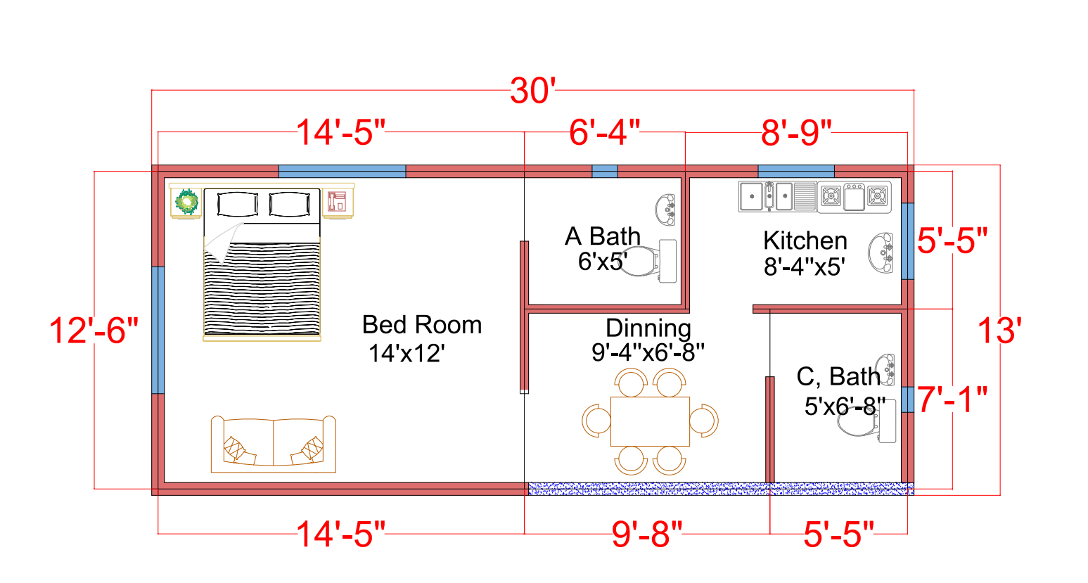 Bedroom-3,Bathroom-2, Kitchen, Dining and Porch