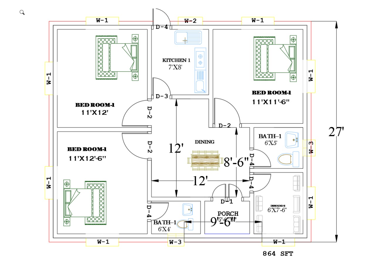 ভবনের আকার : 864(Sqft)